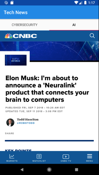 In this task, the focus shifts towards practical application by creating a News Portal App. The app's core functionality involves categorizing and displaying the latest news in technology, specifically focusing on Cybersecurity and Artificial Intelligence. The implementation utilizes a combination of Material Design components, including Tabbed Layout, Card View, Recycler View, and Staggered GridLayout.The app loads news content from the provided `news_list.txt` file and corresponding images. The loading process is managed by a FragmentPagerAdapter, creating fragments as placeholders for displaying categorized news. Recycler View is employed to populate the news in a Staggered Grid Layout, with each news item encapsulated within a CardView. Clicking on a news item triggers the loading of the respective website on a new fragment featuring a web view.